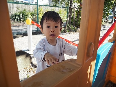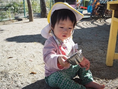 ひとつひとつの新しい経験に夢中になりながら、戸外遊びを楽しんでいます。