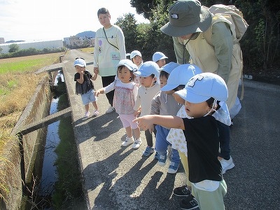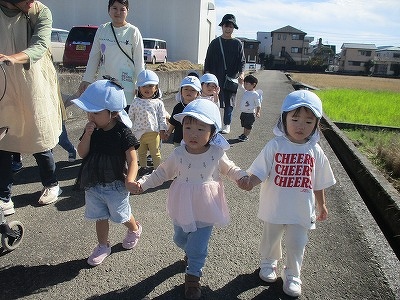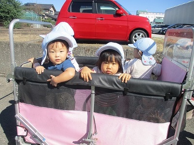 お天気のいい日、カートに乗ったりお友だちと手をつないで散歩に出かけました。