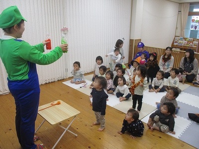 先生のマジックや、絵本を見たりして楽しんでいると・・・