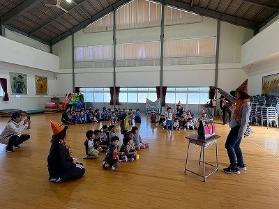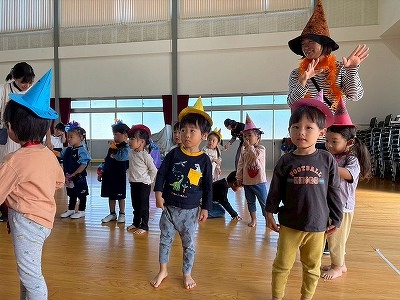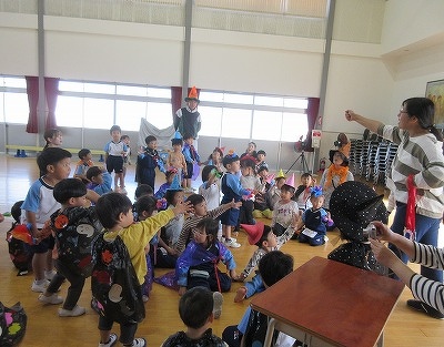 マジックショーやじゃんけんゲーム、ハロウィンダンスをして、みんなで楽しみました。