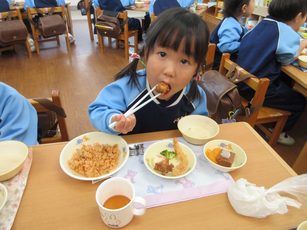 頑張った後には、お楽しみのクリスマスメニューの給食をモリモリ食べました!!