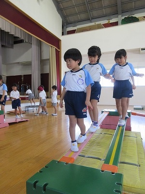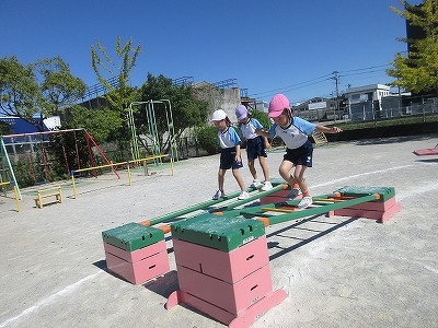 10月の運動会に向けてみんなでどのような競技をしたいか話し合いをするなかで「かけっこは絶対やりたい!」「年長さんになったきバルーンもできる」「跳び箱とか跳べたらかっこいいな~」などの声があり、子どもたちの“やりたい!”を詰め込んだ運動会になりました。