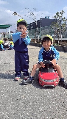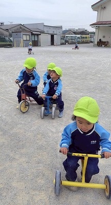 三輪車に乗ってみんなで運動場をお散歩。たのしいな♬