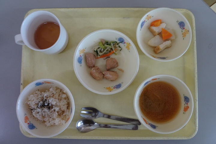 (鶏の照り焼き) 園で使用している神山鶏の特徴は、3つのゼロです。①抗生物質・抗菌剤ゼロ②遺伝子組み換えなし③収穫後農薬なし の安心食材です。