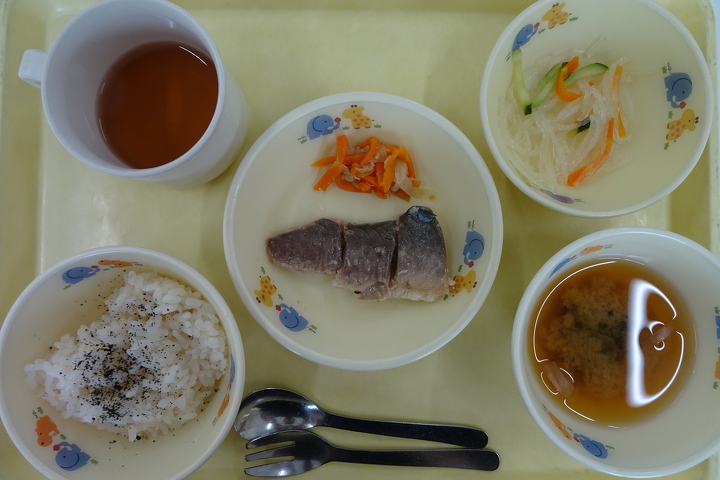 (ポークカレーライス)  園児から大人気のカレーライス、給食室から漂ってくるカレーの香りで「今日はカレーライスや」という声が聞こえてきます。