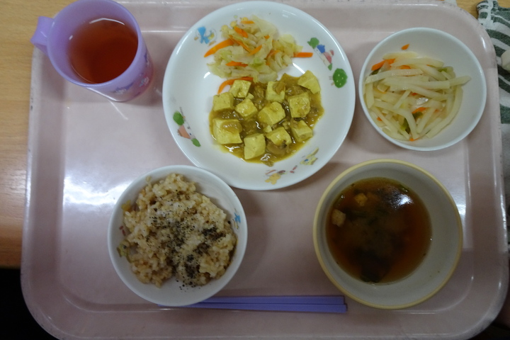 (豆腐のカレー煮) 麻婆豆腐のカレーバージョンです。大好きなカレー味で美味しくいただけます。