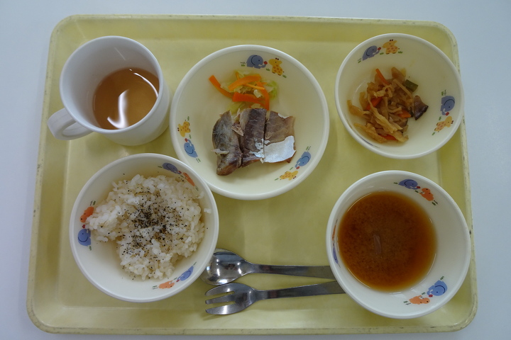 (チキンカレーライス) 本日は、人気メニューのカレーです。園で使用している神山鶏の特徴は、3つのゼロです。①抗生物質・抗菌剤ゼロ②遺伝子組み換えなし③収穫後農薬なし の安心食材です。