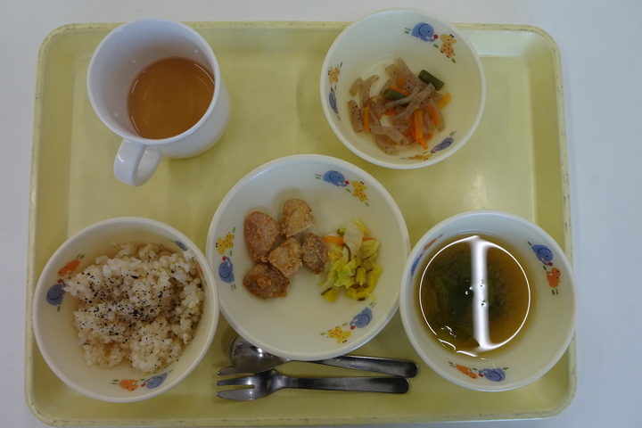 (七草汁) 1/7は七草の日です。七草の日とは、年末年始で疲れた胃や身体をいたわるために七草粥を食べ、一年の無病息災を願う行事です。春の七草は「せり・なずな・ごぎょう・はこべら・ほとけのざ・すずな・すずしろ」です。本日は七草汁にしています。
