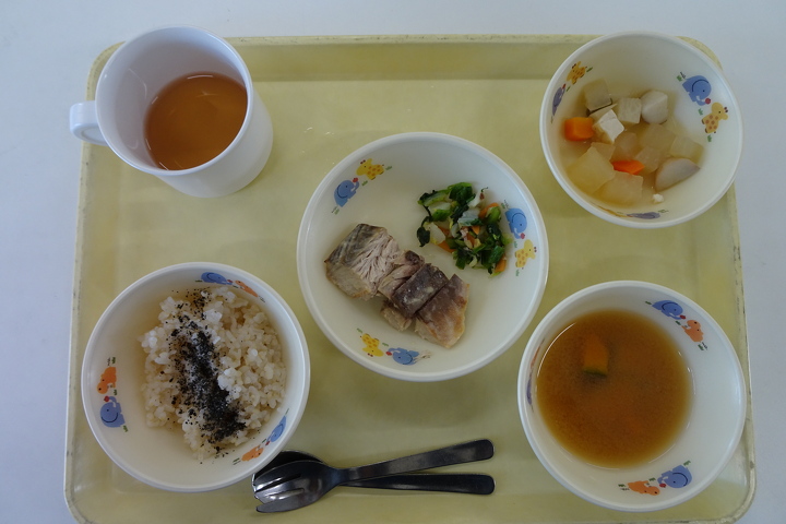 (魚の香味焼き・サバ) 青魚に含まれるEPA・DHAは、記憶力や学習能力の向上・視力の回復などの効果が期待できます。本日は、鯖を蒲焼きにしました。照り焼き風のタレでご飯のすすむ一品となっています。