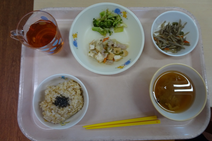 (魚の蒲焼き) 園児が大好きな甘辛いたれが魚に絡んで、ご飯によく合うおかずとなっています。